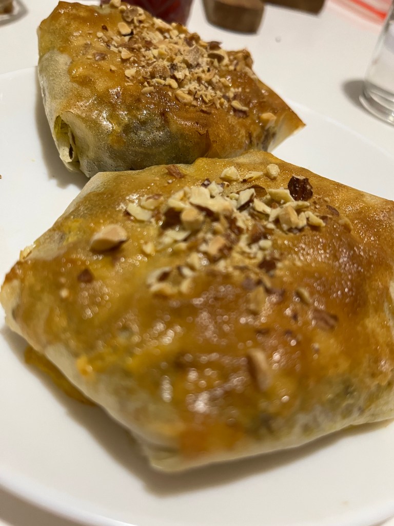Retourner votre pastilla, enduire d’œuf. Et parsemer d’amandes.