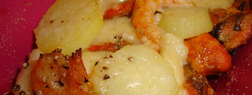 Ajoutez enfin le gruyère râpé, le chèvre et un peu de basilic, puis mélangez.